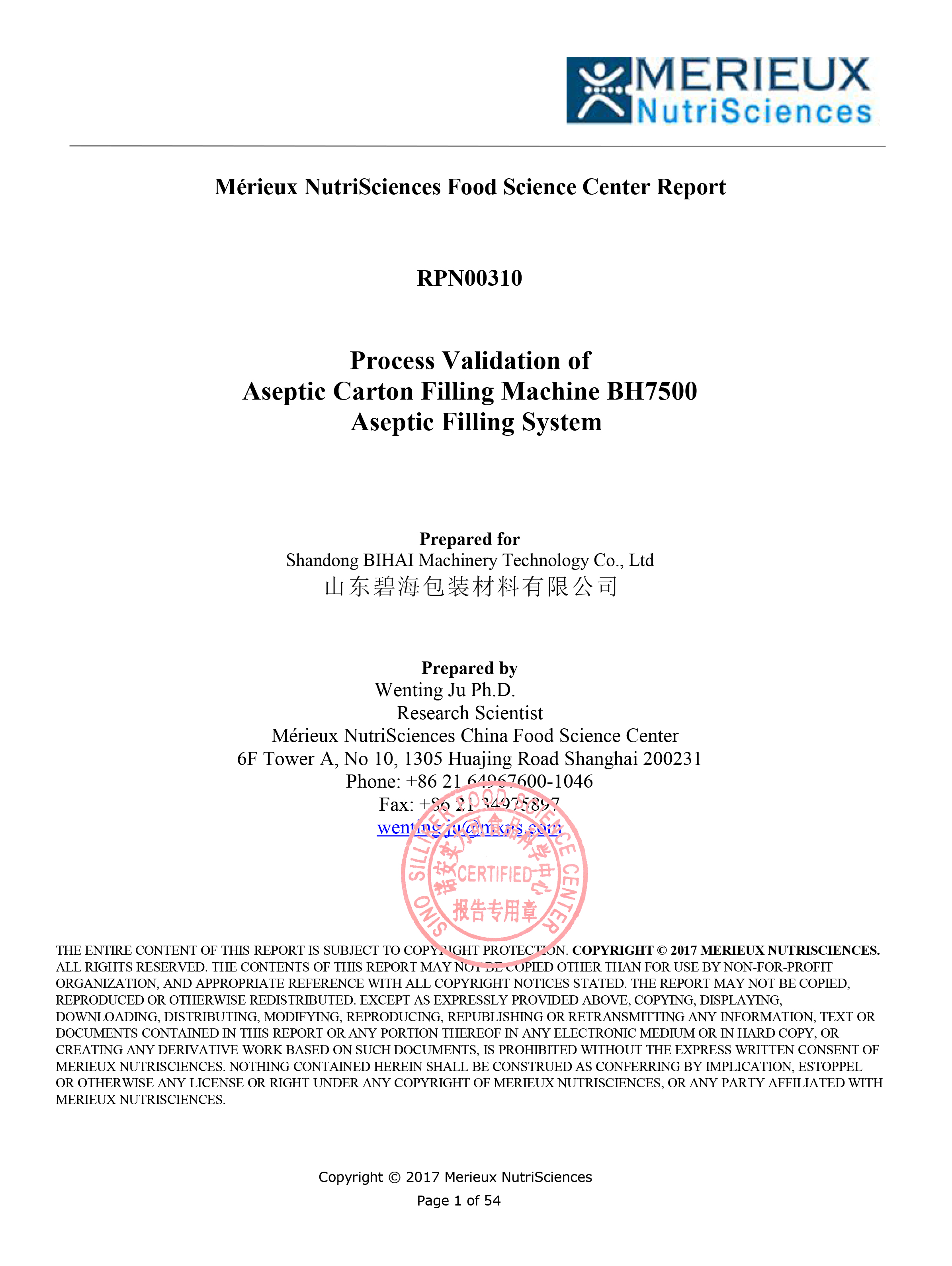 2017年5月,山東碧海包裝材料有限公司喜訊再傳,其生產(chǎn)的BH7500系列無(wú)菌紙盒灌裝機(jī)通過(guò)了法國(guó)諾安實(shí)力可商品檢驗(yàn)有限公司挑戰(zhàn)性無(wú)菌驗(yàn)證。