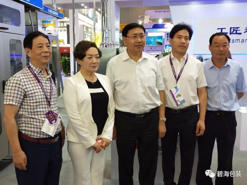 碧海公司董事長厲善紅、副總經(jīng)理王立、副總經(jīng)理劉紅珍向參觀領(lǐng)導(dǎo)介紹了此次展示的BH7500-200SQ鉆石包型無菌紙盒灌裝機(jī),畢司長高興地說:“我們在國產(chǎn)奶業(yè)包裝設(shè)備前拍照留念,為國產(chǎn)設(shè)備站臺(tái)!”